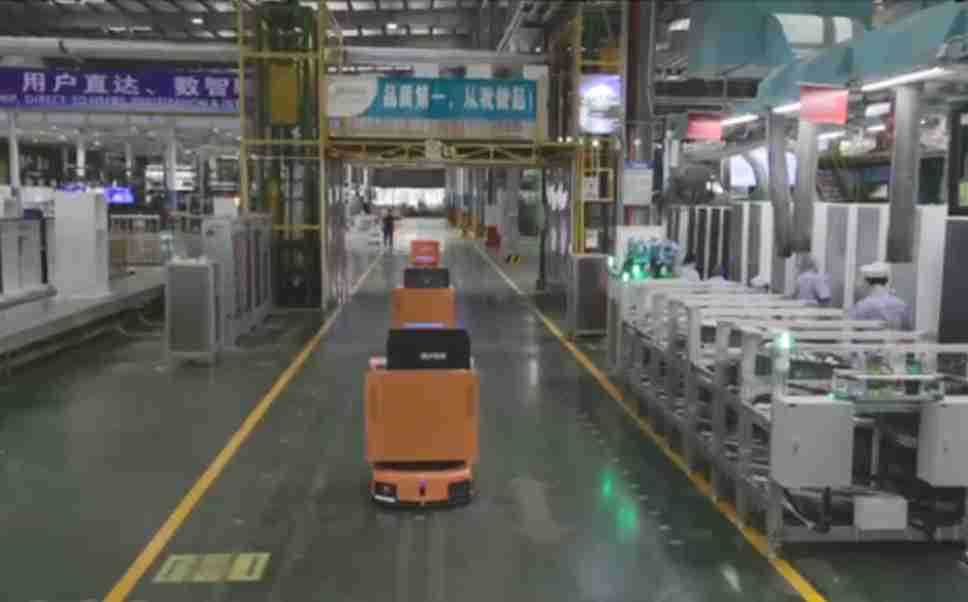 为车载冰箱物流配送打造的智能解决方案,,包含产中物流通过潜伏举升AMR搬运至线边,,,,产后成品物流智能仓储,,,,流程包含产中物流智能齐套入库,,,线边安灯叫料AMR智能配送至线边,,,成品入库、、、、出库,,通过无人堆高车机器人,,智能仓储管理替代人工作业管理,,,实现更高存储、、、更高效率、、更具柔性化的解决方案。。。